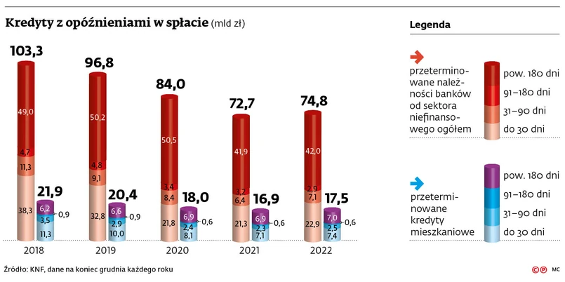 W krajowych bankach nie ma problemu z niespłacanymi kredytami. Tak wynika z danych prezentowanych przez monitorujące sektor instytucje państwowe i komercyjne. - Jakość portfela nie wygląda źle, a wręcz zaskakująco dobrze. Prawie we wszystkich kategoriach, zarówno we wczesnych przeterminowaniach, jak i w dłuższych, jesteśmy lepsi niż przed pandemią - ocenił w środę Mariusz Cholewa, prezes Biura Informacji Kredytowej.