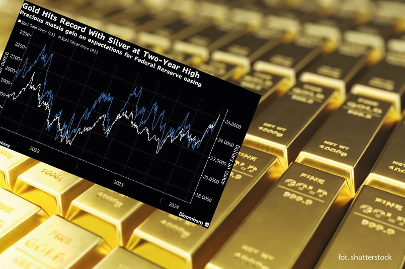 Złoto podrożało, ustanawiając nowy rekord na poziomie powyżej 2288 dolarów za uncję. Po osiągnięciu szczytu cena się ustabilizowała, notując niewielkie zmiany. Także srebro drożeje, osiągając ceną 26 dolarów za uncję, to najwięcej od dwóch lat.