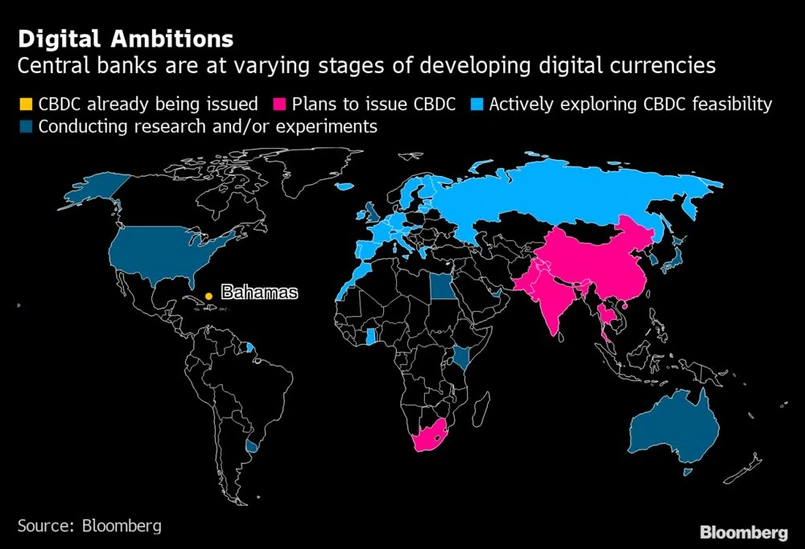 W 2020 roku swoją cyfrową walutę wdrożyły Bahamy, aby zwiększyć efektywność płatności pomiędzy archipelagiem 700 wysp składających się na terytorium tego kraju. Następne w kolejce są zapewne Chiny, które prowadzą już od jakiegoś czasu pilotażowe testy konsumenckie. Cyfrowy pieniądz będzie głównym tematem konferencji organizowanej w tym tygodniu przez Bank Rozrachunków Międzynarodowych (BIS), na której o przyszłości sektora finansowego będą rozmawiali urzędnicy banków centralnych.