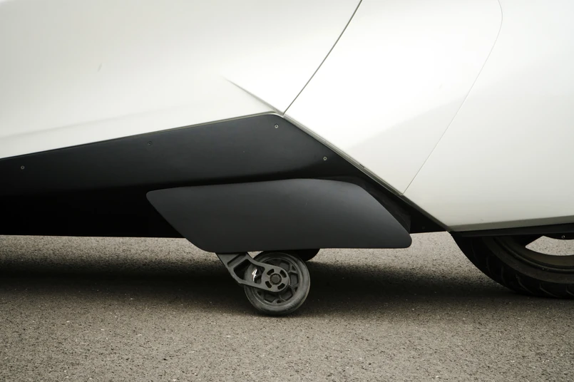 Samochody dwukołowe po obu stronach mają odpowiedniki rowerowej nóżki, które utrzymują je w pionie kiedy stoją. Podczas ruchu są one podciągane do góry.