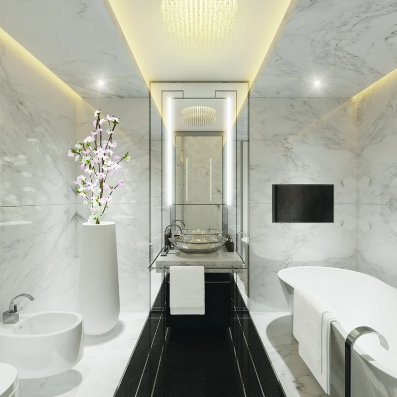 2 Złota 44: Pakiet wykończeń Classic Elegance - Marble Nobility - styl dark, wizualizacja łazienki