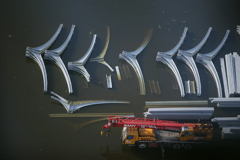 3 7. Tiencin, Chiny. Stale występujące powodzie mogłyby mieć katastrofalny wpływ na gospodarkę Tiencinu, w której za ponad 50 proc. PKB odpowiada przemysł produkcyjny. To tu znajdują się zakłady produkcyjne nowego Airbusa A320. Tiencin nie doświadczył powodzi od 1963 roku. O ile w 2005 roku zagorożnych powodzią było 956 tys. mieszkańców, to już w 2070 w sytuacji zagrożenia może znaleźć się nawet 3,8 mln osób.