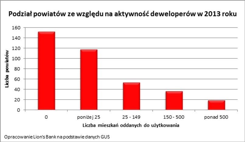 4 Kolejnym zarzutem, jaki można sformułować na podstawie dotychczasowego funkcjonowania programu „Mieszkanie dla młodych”, jest ograniczenie jego działania wyłącznie do mieszkań i na dodatek wyłącznie tych kupowanych od deweloperów. Problem w tym, że zgodnie z danymi Eurostatu ponad połowa Polaków mieszka w domach, a poza tym w przeważającej większości powiatów w Polsce deweloperzy bloków nie budują. Co prawda w sposób bardzo ograniczony do programu dopłat włączono domy, ale w praktyce beneficjenci z możliwości zakupu takiej nieruchomości prawie nie korzystają. Powód? Maksymalna powierzchnia domu, którą można kupić z udziałem dofinansowania z „Mieszkania dla młodych”, to przeważnie do 100 m kw. O 10 metrów więcej mogą kupić rodziny z przynajmniej trójką pociech. Tymczasem takich nieruchomości prawie nie ma w ofercie deweloperów, czego dowodem jest fakt, że przez cały 2014 rok w całym kraju domów kupionych z dopłatą było jedynie 215. Dla porównania osoby fizyczne w ciągu tego samego roku oddały do użytkowania 76,6 tys. nieruchomości (przede wszystkim domy jednorodzinne) – wynika z danych GUS. Rozwiązaniem w tym wypadku nie jest jednak podniesienie limitu wielkości domu, który kwalifikowałby do dopłat. Nie można przecież zapomnieć, ze w większości polskich powiatów deweloperzy nie budują, a więc w praktyce program dofinansowania ograniczony jest terytorialnie do największych miast. Zmiana tego stanu rzeczy możliwa byłaby dzięki rozszerzeniu katalogu celów, na jakie udzielany jest kredyt z rządowym wsparciem, o budowę domu. Warto zauważyć, że to właśnie osoby fizyczne budujące na własne potrzeby domy odpowiadały w 2014 roku za 53,4% wyniku całego budownictwa mieszkaniowego w Polsce. Dla porównania deweloperzy oddali w 2014 roku do użytkowania 41,1% wszystkich mieszkań, które powstały nad Wisłą.