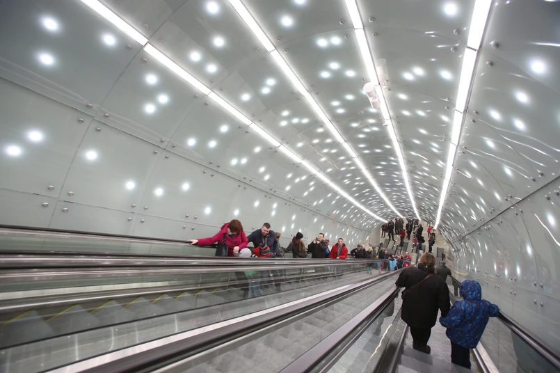 Centralny odcinek II linii metra liczy 7 stacji. Pociągi pokonują go w 13 minut. Na zdjęciu: pasażerowie wchodzą na Stację Dworzec Wileński.