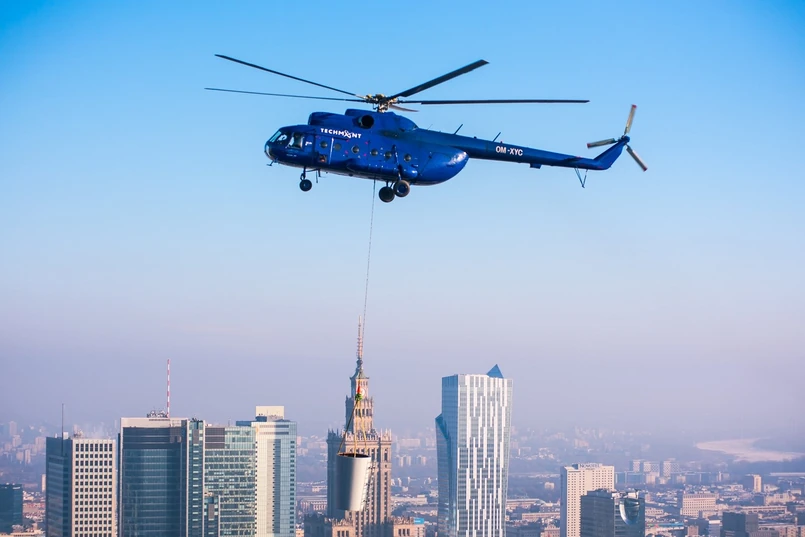 1 Zamontowanie ogromnych iglic było skomplikowaną operacją logistyczną, w której konieczne było wykorzystanie specjalistycznego sprzętu i helikoptera. Każda iglica została podzielona na 12 segmentów. Elementy, jeden po drugim, były podnoszone helikopterem z placu rozładunkowego, podniesione powyżej dachu budynku i precyzyjnie opuszczane na odpowiednie miejsce.