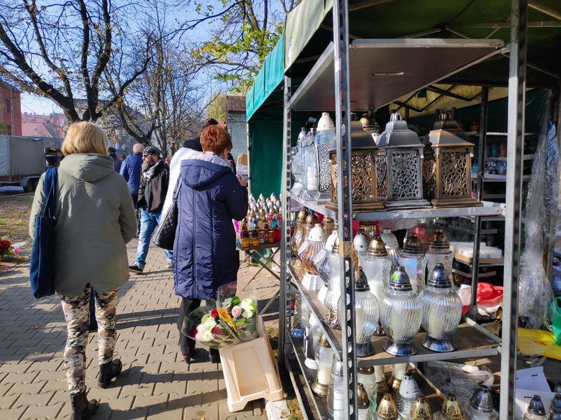 Na cmentarzach sytuacja wygląda znacznie inaczej – tam ceny zniczy są wyższe, często zaczynają się od 10-15 zł, a bardziej ozdobne i większe modele mogą kosztować nawet od 30 do 50 zł, a niekiedy dochodzą do setek złotych. Na stoiskach przy cmentarzach odnotowano wysokie ceny zniczy. Polsat News sprawdził, że na wrocławskim Cmentarzu Osobowickim koszt najtańszych zniczy to 12 zł, natomiast największe, najbardziej dekoracyjne modele osiągają cenę do 130 zł. Również kwiaty są sporym wydatkiem – bukiet chryzantem to koszt rzędu 50 zł we Wrocławiu, a doniczka w Łodzi waha się od 12 do 70 zł. W związku z tym, że ceny przy cmentarzach sięgają nawet 100 zł, TVP3 Łódź podkreśla, że coraz więcej osób szuka oszczędności, korzystając ze zniczodzielni lub kupując same wkłady. Sprzedawcy zwracają uwagę, że głównie emeryci, z powodu ograniczeń finansowych, dokładnie oglądają towary, a także, że Polacy coraz częściej rezygnują z zakupów u nich.