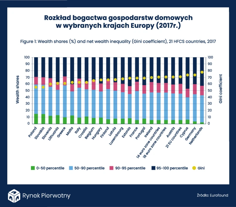 Stwierdzenia mówiące o dużym rozwarstwieniu majątkowym wśród Polaków na pewno są bardzo nośne i atrakcyjne politycznie. Jeden z artykułów przygotowanych niedawno przez ekspertów portalu RynekPierwotny.pl potwierdził jednak, że wiele innych krajów cechuje się większym niż Polska udziałem najzamożniejszych osób w majątku gospodarstw domowych. Warto rozwinąć ten ciekawy temat i zaprezentować dane dotyczące nie tylko państw Starego Kontynentu. Takie informacje zebrane przez OECD, Eurofound, oraz Eurostat wskazują, że Polska pod względem rozwarstwienia majątkowego jawi się jako wyjątkowo równościowy kraj. Zupełnie inna sytuacja dotyczy USA oraz naszego zachodniego sąsiada.