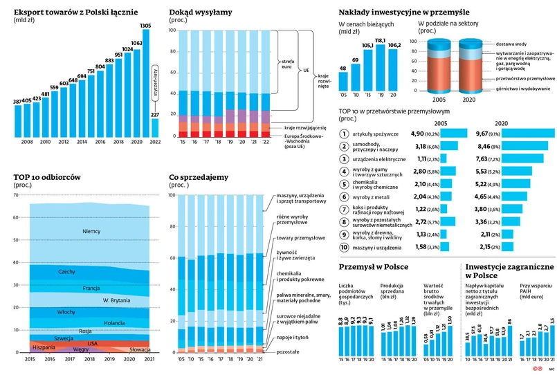 Zdaniem ekspertów taki wynik nie byłby możliwy bez rozwoju przemysłu. - Ekspansja eksportu powiązana jest ściśle z rozwojem sektora przetwórczego, do czego w dużym stopniu przyczynił się napływ inwestycji bezpośrednich. Duża część z nich polegała na budowie w Polsce zakładów produkcyjnych na potrzeby różnych branż, m.in. automotive, RTV AGD, elektronika użytkowa, akumulatory, maszyny i urządzenia - wyjaśnia Piotr Bielski, dyrektor departamentu analiz ekonomicznych w Santander Bank Polska. Zaznacza on, że przez ostatnie dwie dekady Polska umocniła swoją pozycję „centrum wytwórczego dla Europy”. Dzięki dogodnemu położeniu geograficznemu, konkurencyjnym kosztom pracy, ale też dużym zasobom wykwalifikowanej siły roboczej byliśmy bowiem w stanie przyciągać inwestorów.