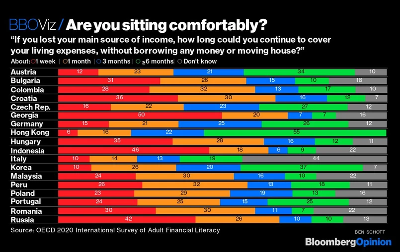 Według badania International Survey of Adult Financial Literacyprzeprowadzonego przez Organizację Współpracy Gospodarczej i Rozwoju (OECD) w 2020 r., 42 proc. ze 125 787 ankietowanych dorosłych stwierdziło, że martwi się o pokrycie codziennych wydatków. 40 proc. było zaniepokojonych swoją sytuacją finansową, a 37 proc. stwierdziło, że po prostu sobie radzą.