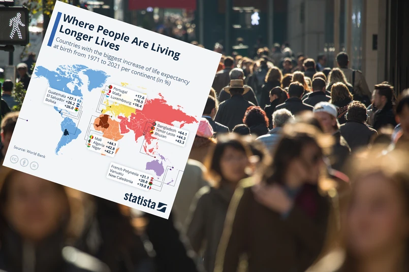 W ciągu ostatnich 50 lat szacowana długość życia globalnej populacji gwałtownie rośnie. Przewidywana średnia długość życia osoby urodzonej w 1971 r. wynosiła 58 lat, podczas gdy w 2021 r. szacunki wzrosły do poziomu 71 lat, co oznacza wzrost o około 22 proc. Jednak są kraje na świecie, w których ten skok był jeszcze bardziej wyraźny.