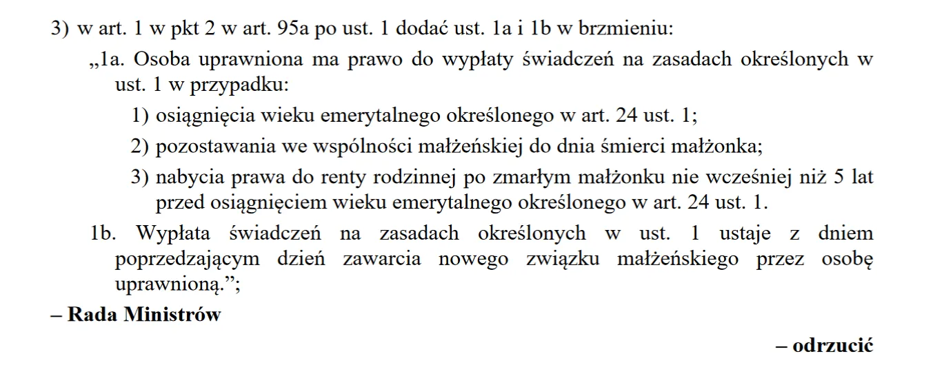 2) Obniżenie do około 5342,88 zł (z około 10 000 zł) limitu górnej kwoty renty wdowiej - eliminuje to trochę lepiej sytuowane osoby z grona beneficjentów tego świadczenia;
