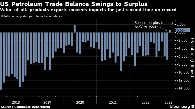 1/5 Po raz drugi w historii danych Departamentu Handlu sięgających 1994 r., Stany Zjednoczone odnotowały nadwyżkę w handlu ropą naftową po uwzględnieniu inflacji. Eksport ropy i produktów wzrósł w marcu o ponad 24 proc. do rekordowych 27,6 mld dolarów, co stanowi największy miesięczny wzrost od 2017 r. Jak wynika z danych opublikowanych w zeszłym tygodniu, do USA sprowadzono ropę naftową o wartości 27,1 mld dolarów, najmniej od listopada. W ostatnim czasie notowania ropy naftowej mocno się wahały, kontrakty terminowe na West Texas Intermediate i Brent spadały trzeci tydzień z rzędu. Spadek nastąpił kilka dni po tym, jak koalicja OPEC+ rozpoczęła nową rundę cięć produkcji, mających pomóc w podtrzymaniu cen i prewencyjnej ochronie przed słabnącymi perspektywami makroekonomicznymi. Inwestorzy będą się koncentrować obecnie na miesięcznym raporcie OPEC dotyczącym rynku ropy, który ma się ukazać w czwartek, aby uzyskać dalsze wskazówki dotyczące podaży i popytu. Zmniejszona produkcja przez kartel w tym roku skłoniła analityków do zrewidowania swoich prognoz cenowych na koniec roku, z medianą prognozy na poziomie 86,38 USD za baryłkę Brent i 82 USD za WTI, zgodnie z danymi zebranymi przez Bloomberg.