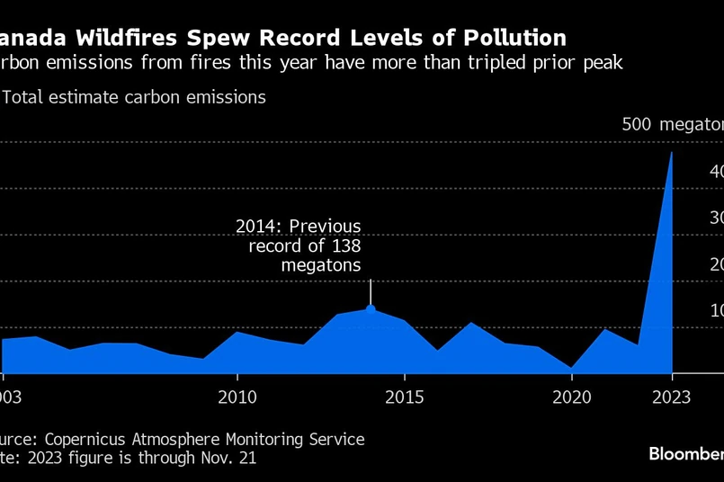 2/4 Rekordowe pożary w Kanadzie niszczą duże obszary lasów, które są naturalnymi pochłaniaczami dwutlenku węgla. Według Kanadyjskiego Międzyagencyjnego Centrum Pożarów Leśnych w całym kraju wciąż płonie prawie 300 obszarów, a prawie 70 z tych pożarów wymknęło się spod kontroli. Według danych z programu monitorowania atmosfery Copernicus pożary w Kanadzie doprowadziły do rekordowej emisji gazów cieplarnianych, ponad trzykrotnie więcej niż wynosił poprzedni rekord. Przyczyną pożarów w Kanadzie są zmiany klimatyczne. W ich wyniku w kraju spadło mniej śniegu i wystąpiła susza, która panowała zeszłej zimy w dużych częściach kraju.