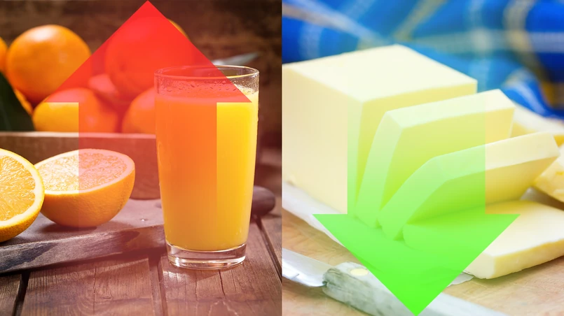 Jedynymi produktami, których ceny średniorocznie spadły, były tłuszcze – kategoria tłuszcze zwierzęce okazała się tańsza o 1,9 proc., a samo masło – o 4 proc. Obniżki cen tych produktów to tzw. efekt bazy, czyli bardzo mocnego wzrostu w okresie, do którego obecne ceny są porównywalne. Przypomnijmy bowiem, że w 2022 r. mieliśmy do czynienia z raptownym wzrost cen produktów tłuszczowych, co było efektem wojny w Ukrainie i sankcji na Rosję, a oba te kraje są czołowymi na świecie producentami tłuszczów.