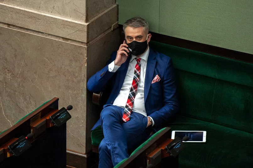 "Są w polskim parlamencie siły, które mówią, że są jedną nogą na opozycji, ale drugą w koalicji. Trzeba się im przyglądać i mówić, że to głosowanie w sprawie lex TVN, to nie jest głosowanie Prawa i Sprawiedliwości" - przekonywał. "To jest głosowanie imienne, każdego posła i każdej posłanki. Każdy dzisiaj podnosi rękę za tym, żeby obalić w Polsce niezależne media albo żeby je obronić" - dodał.