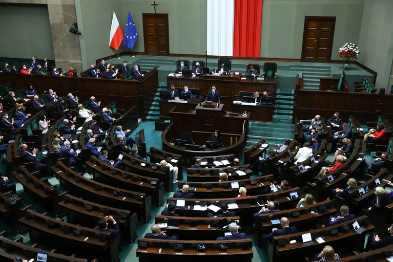 W Sejmie odbyło się we wtorek po południu drugie czytanie projektu ustawy ws. ratyfikacji decyzji o zwiększeniu zasobów własnych UE. Po II czytaniu odbyła się przerwa, a po niej izba przystąpiła - po przyjęciu wniosku o nieodsyłanie projektu do komisji i przejście do III czytania - do głosowań. Najpierw głosowanych było 10 poprawek złożonych podczas debaty przez kluby KO i PSL. Wszystkie zostały odrzucone.
