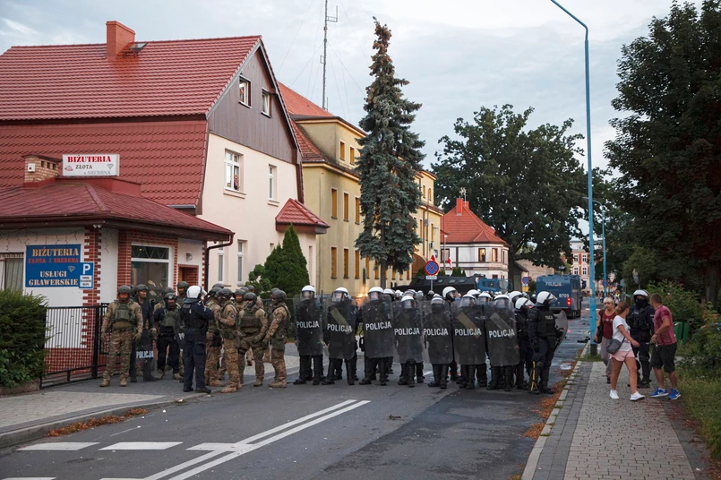 Do zdarzenia odniosła się dolnośląska policja, która poinformowała, że lubińscy funkcjonariusze w piątek ok. godz. 6 rano udali się na interwencję dotyczącą agresywnego mężczyzny, który miał rzucać kamieniami w okna zabudowań. Na numer alarmowy zadzwoniła matka mężczyzny, informując policję, że jej syn nadużywa narkotyków. Z wyjaśnień policji wynika, że skierowani na miejsce funkcjonariusze próbowali wylegitymować i uspokoić agresywnego mężczyznę. Ten jednak nie reagował na polecenia. W rezultacie policjanci obezwładnili 34-latka używając kajdanek i chwytów obezwładniających.