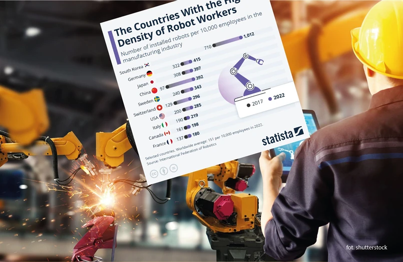 Chiny i Korea Południowa to kraje, które w latach 2017-2022 poczyniły największe postępy w wyścigu do automatyzacji przemysłowej. W tym okresie lider rankingu robotyzacji Korea Południowa, zwiększyła zagęszczenie robotów o 302 instalacje w 10 tys. pracowników, co stanowiło wzrost o ponad 42 proc. Jednak najszybciej rozwijały się Chiny, które zwiększyły liczbę instalacji robotów w przemyśle 300 jednostek na 10 tys. pracowników, co oznacza wzrost 309 proc.