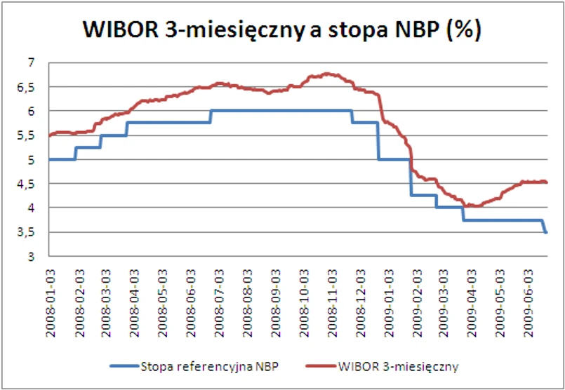 Jednocześnie rynek oczekuje spadku stopy WIBOR w okolice 4,27 procent, co można wytłumaczyć oczekiwaniem przez część ekonomistów jeszcze jednej obniżki stóp o 25 pkt, bazowych. Realizacja takiego scenariusza spowodowałaby spadek raty kredytu z naszego przykładu do 2010 zł, czyli o 73zł.