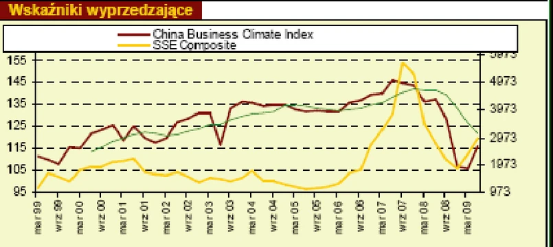 Zupełnie odwrotnie wygląda sytuacja w Chinach. Mimo, że Chiny to właściwie jedyny kraj gdzie rządowe programy stymulacyjne przynoszą bardzo wyraźne rezultaty, to w piątek premier tego kraju oświadczył, że podstawy pod ożywienie gospodarcze nie są jeszcze trwałe i obiecał kontynuować poluźnioną politykę fiskalną i monetarną. Rynki Państwa Środka dyskontowały w ubiegłym tygodniu taką politykę poprzez spadek cen obligacji i wzrost cen akcji, czyli zachowywały się inaczej niż w większości innych krajów. Segment chińskich papierów dłużnych szczególnie mocno ucierpiał w ubiegłym tygodniu. Po raz pierwszy od 8 lat, rządowi chińskiemu nie udało się sprzedać na aukcji wszystkich zaplanowanych obligacji. Natomiast dynamika kursów akcji, chociaż w skali minionego tygodnia była już raczej symboliczna, to i tak na tle innych rynków wykresy chińskich indeksów wciąż prezentują się imponująco. Jak na razie zupełnie nie widać przesłanek technicznych, które świadczyłyby o zmianie trendu na rynku akcji. Wyceny oparte na wskaźnikach rynkowych chińskich papierów udziałowych mogą jednak sugerować już nie najwyższą atrakcyjność inwestycyjną, nawet biorąc pod uwagę spodziewany, ogromny na tle innych krajów, wzrost PKB.