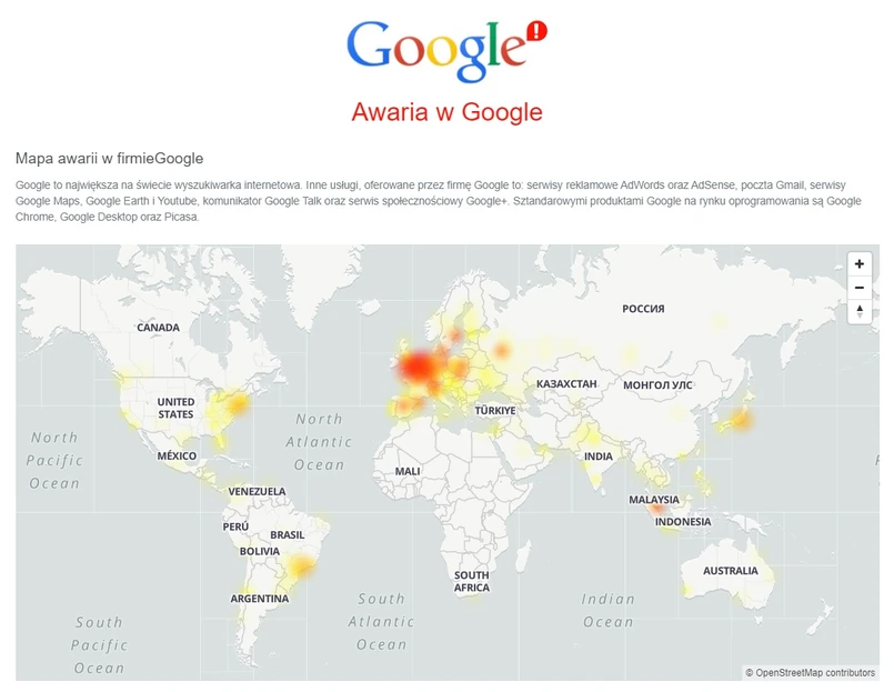 Jak wynika z danych serwisu Downdetector, problemy zgłaszano w całej Europie. Około godziny 14:00 dostęp do usług i aplikacji Google został przywrócony. Nie wiadomo wciąż, co było przyczyną awarii.