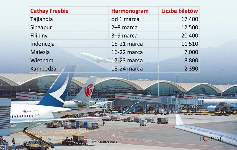 Linie Hong Kong Airlines będą również rozdawać bilety na zasadzie „kto pierwszy, ten lepszy”.