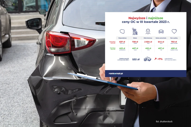 Z analizy cen OC porównywarki rankomat.pl wynika, że w III kwartale 2023 r. najwięcej za obowiązkowe ubezpieczenie płacili kierowcy z Gdańska (738 zł), Wrocławia (717 zł) i Warszawy (685 zł). Towarzystwa ubezpieczeniowe proponowały najtańsze polisy OC mieszkańcom Opola (487 zł), Katowic (507 zł) i Rzeszowa (517 zł). Różnica cen OC pomiędzy najtańszym Opolem a najdroższym Gdańskiem wyniosła aż 51,5%. We wszystkich miastach wojewódzkich ceny OC wzrosły w porównaniu do roku ubiegłego. Największe wzrosty dotyczyły mieszkańców Olsztyna (18,1%), Szczecina i Wrocławia (10,6%).