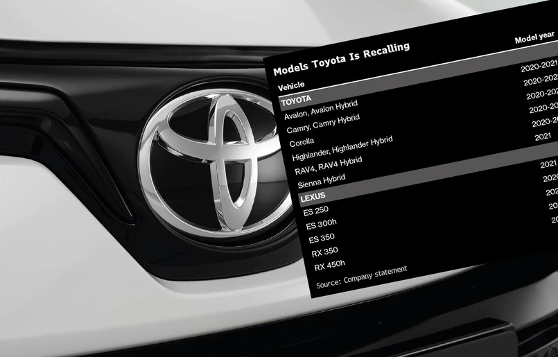 Wycofanie dotyczy niektórych pojazdów z rocznikami 2020–2022 z napędem gazowym i hybrydowym, w tym Toyoty Avalon, Camry, Corolla, Highlander, RAV4 i Sienna, a także modeli Lexus ES i RX.