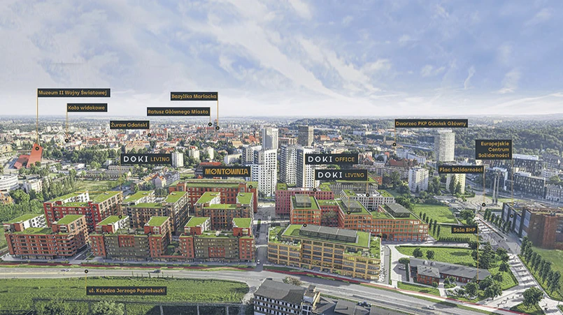 Tereny postoczniowe w Gdańsku budzą się z głębokiego snu i jest to wyjątkowa szansa stworzenia wspaniałej, nowoczesnej dzielnicy. DOKI to pierwszy tak duży krok do ożywienia tego obszaru i ukazania jego ogromnego potencjału. Młode Miasto powstawać będzie wiele lat, za sprawą wielu rozpoczętych i planowanych na tym terenie inwestycji o różnorodnych, komplementarnych funkcjach, doskonale wpisując się w ideę nowoczesnego miasta – miasta małych odległości. Prace inwestycyjne na tych terenach przebiegają bardzo dynamicznie i już w I kwartale 2023 roku pierwsi mieszkańcy będą mogli cieszyć się codziennym życiem w tej prestiżowej lokalizacji.