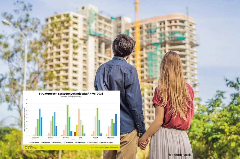 Bardzo dobrą koniunkturę sprzedażową było też widać w Trójmieście, gdzie głównym filarem rynku pierwotnego był oczywiście Gdańsk. Sierpniowa sprzedaż trójmiejskich deweloperów okazała się większa nawet od wyników z lata 2021 roku. W relacji do poprzednich 12 miesięcy mówimy o wzroście wynoszącym 61%. Na terenie Trójmiasta rozkład cen sprzedanych nowych lokali, jak zwykle był dość wyrównany. Najpopularniejsze okazały się następujące przedziały cenowe: 10 000 zł/mkw. - 12 000 zł/mkw. (23%), 12 000 zł/mkw. - 15 000 zł/mkw. (18%) oraz 15 000 zł/mkw. - 20 000 zł/mkw. (19%)