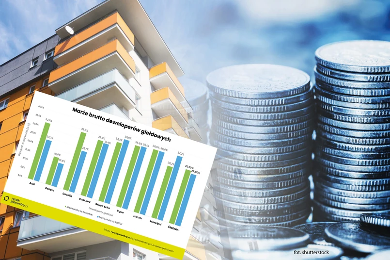 Marże brutto ze sprzedaży deweloperów mieszkaniowych notowanych na rynku kapitałowym od dość dawna utrzymują się na relatywnie wysokim poziomie, przekraczającym średnio 30 proc. W bardzo słabym sprzedażowo roku ubiegłym średnia marża brutto wyniosła blisko 31 proc., a w pierwszych sześciu miesiącach tego roku była nawet wyższa o prawie 2 p.p.