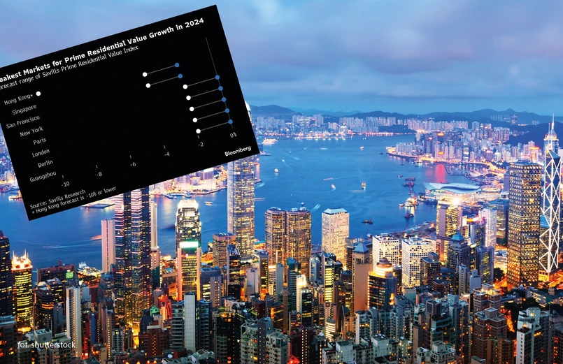 Wysokie stopy procentowe i niepewność polityczna w Hongkongu podsycają sprzedaż nieruchomości, jednocześnie odstraszając kupujących. Połączenie rosnącej podaży i spadającego popytu na mieszkania prawdopodobnie spowoduje w tym roku spadek cen najlepszych lokali o ponad 10 proc. Przy tak głęboka przecenie Hongkong będzie najsłabszym rynkiem nieruchomości śledzonym przez Savills.