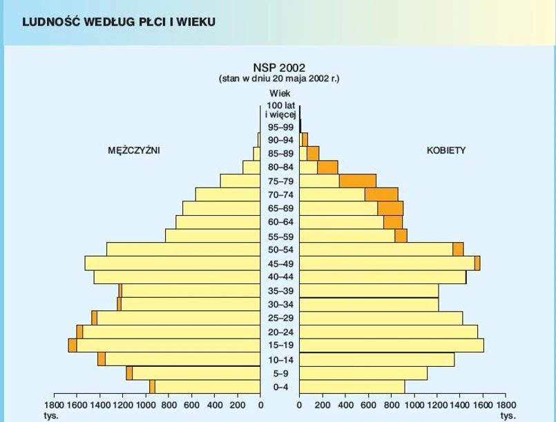 1 Dane z najnowszego spisu powszechnego ludności pokazują, że liczba ludności wzrosła do 38 mln 511 tys. osób, a struktura wiekowa ludności ulega dalszym przeobrażeniom. O 1,1 mln ludzi zmniejszyła się liczba dzieci poniżej 14. roku życia. O dwa lata wydłużył się również średni wiek mieszkańca Polski. Wzrósł z 35,8 lat w 2002 r. do 38,1 lat w 2011 r.