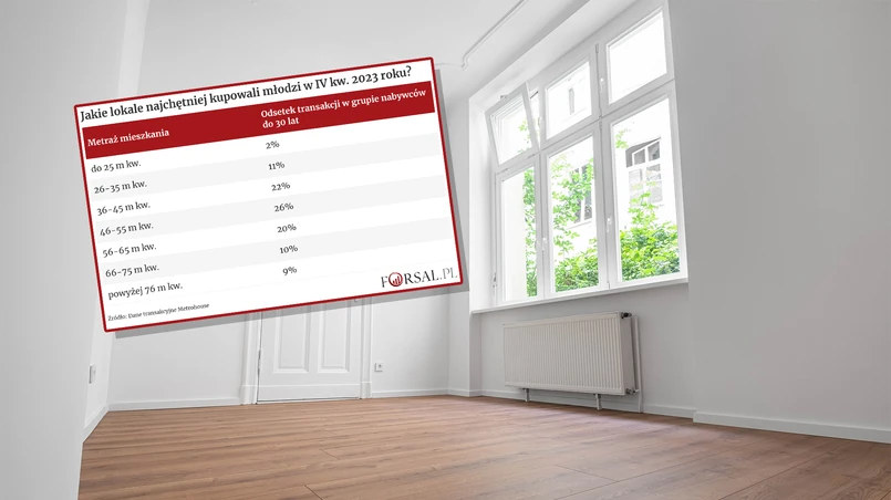 Z raportu wynika, że ze wszystkich transakcji zawartych przez pośredników Metrohouse w IV kw. 2023 r. najmłodsi nabywcy, czyli ci poniżej 30 roku życia, kupowali mieszkanie o średnim metrażu 53 m kw. W transakcjach dominują mieszkania od 46 do 55 m kw., chociaż 19 proc. lokali stanowią te największe – o metrażu ponad 66 m kw.