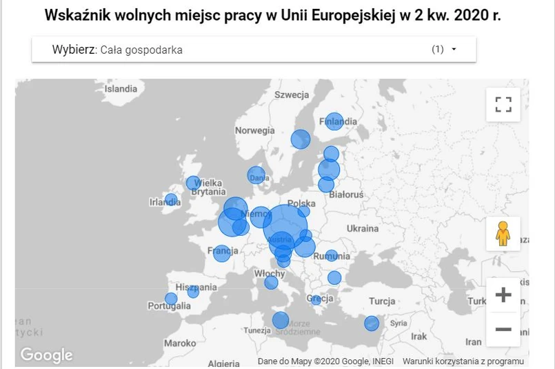 Spośród państw członkowskich Wspólnoty, dla których dostępne są porównywalne dane, najwyższe wskaźniki wolnych miejsc pracy w drugim kwartale 2020 r. odnotowano w Czechach (5,4 proc.), Belgii (3,1 proc.) i Austrii (2,6 proc.). Z kolei najmniej wolnych wakatów odnotowano w Grecji (0,3 proc.), a także w Irlandii, Hiszpanii, Polsce, Portugalii i Rumunii (po 0,7 proc.).