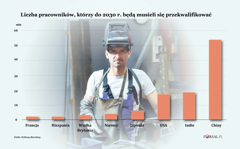 Jeden na 16 pracowników w Chinach, Francji , Niemczech, Indiach, Japonii, Hiszpanii, Wielkiej Brytanii i Stanach Zjednoczonych prawdopodobnie będzie zmuszony do zmiany zawodu, wynika z opublikowanego w czwartek raportu.