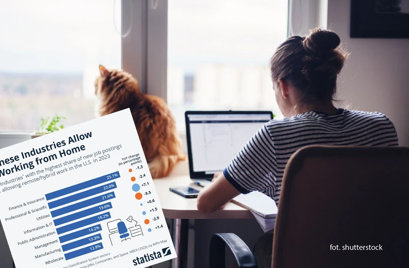 Badanie wykazało, że spośród wszystkich ofert pracy w USA z branży finansów i ubezpieczeń ponad jedna czwarta (25,1 proc.) to oferty z opcją pracy zdalnej lub hybrydowej.