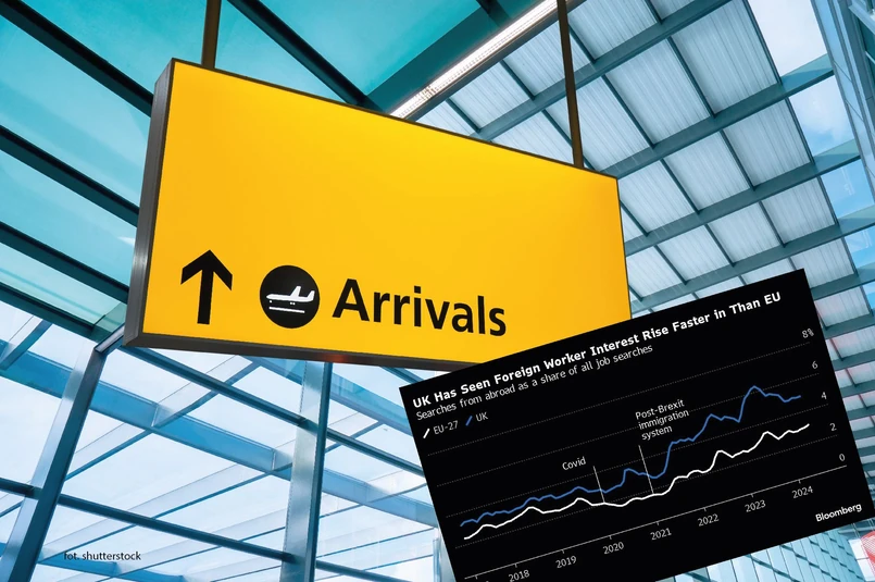 Jak podaje Bloomberg, zainteresowanie ofertami pracy w Wielkiej Brytanii na Indeed jest o 54 proc. wyższe niż przed Brexitem i pandemią. W pierwszej połowie 2024 r. wydano trzykrotnie więcej zezwoleń na pracę niż w 2019 r.
