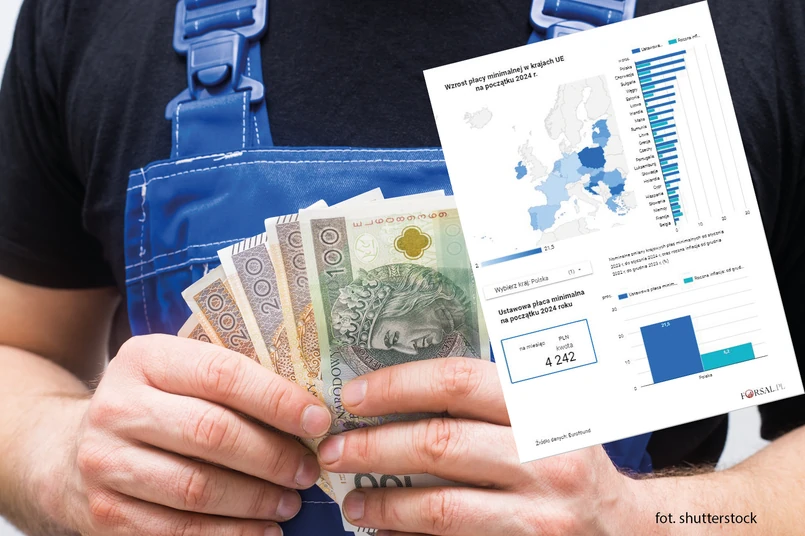 Jak podał Eurofound najwyższy wzrost płacy minimalnej otrzymają pracownicy w Polsce, gdzie minimalne miesięczne wynagrodzenia na początku 2024 r. wzrosło do 4242 złotych. Oznacza to, że podwyżka najniższej pensji od stycznia 2023 r. do stycznia 2024 r. wyniosła 21,5 proc. W tym samym czasie inflacja w Polsce była na poziomie 6,2 proc. W drugiej połowie roku sytuacja najmniej uposażonych pracowników w Polsce jeszcze się poprawi, bo od lipca minimalna pensja wzrośnie do 4300 zł.