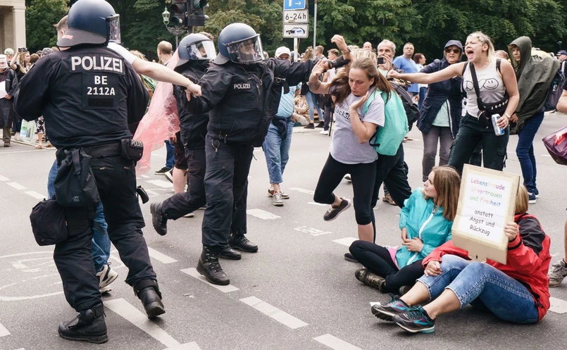 Protesty, głównie przeciwko działaniom rządu w czasie pandemii koronawirusa, rozpoczęły się już rano wokół Placu Olimpijskiego w dzielnicy Charlottenburg. Zebrało się tam ponad tysiąc osób. Niektóre próbowały przełamać policyjny kordon. Funkcjonariusze musieli użyć siły i zastosowali gaz pieprzowy.