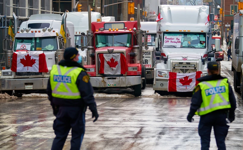Policja w Ottawie ponowiła w czwartek swój wcześniejszy komunikat, w którym zwróciła się do protestujących w stolicy kierowców ciężarówek i ich sympatyków z przypomnieniem, że stwarzanie przeszkód w przemieszczaniu się i korzystaniu z własności jest naruszeniem prawa. Dodano, że za takie zachowanie uczestnicy protestów mogą zostać zatrzymani, ich ciężarówki skonfiskowane, a kierowcy po skazującym wyroku sądu mogą być niewpuszczani do USA.
