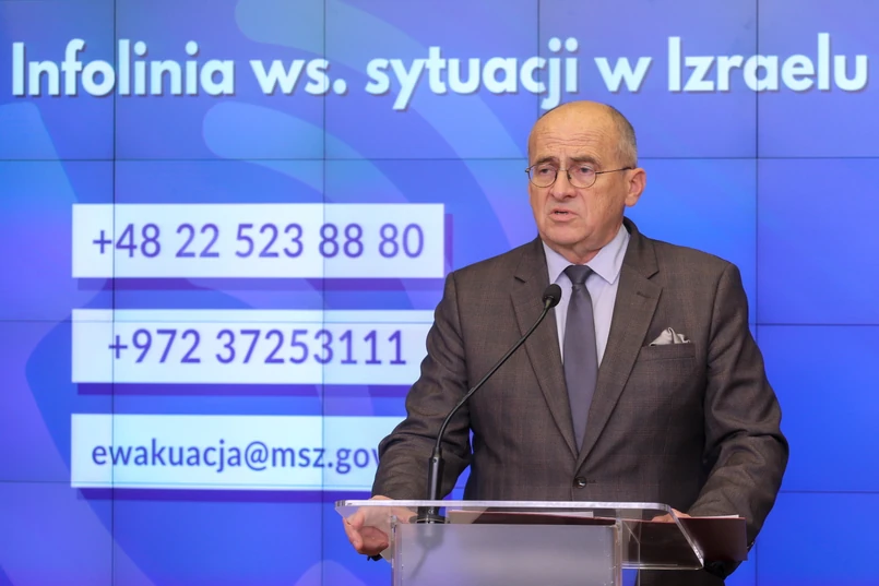 Poinformował również, że w MSZ działa centrum operacyjne, które uruchomiło infolinię, aby przyjmować zgłoszenia i udzielać informacji. Działają dwa numery infolinii: w Polsce + 48 22 523 88 80 oraz w Izraelu + 972 372 53 111. Dostępny jest także adres e-mail: ewakuacja@msz.gov.pl .