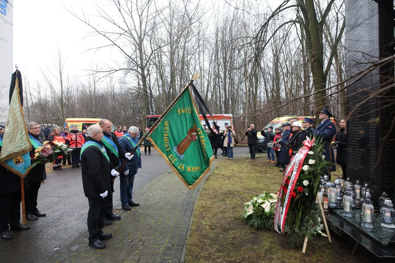 Warty pod pomnikiem wystawili śląscy strażacy, policjanci, ratownicy medyczni i ratownicy górniczy. Odmówiono modlitwy, rozległy się też syreny pojazdów ratunkowych. Odczytano nazwiska wszystkich ofiar katastrofy.