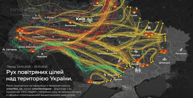 Według danych z ukraińskich źródeł wojskowych, Rosja wystrzeliła około 50 rakiet manewrujących Ch-101 i Kalibr, pochodzących z bombowców Tu-95MS i wyrzutni morskich. Dodatkowo dwa pociski hipersoniczne Kindżał wystartowały z myśliwców MiG-31K – to broń, przed którą trudno się obronić.