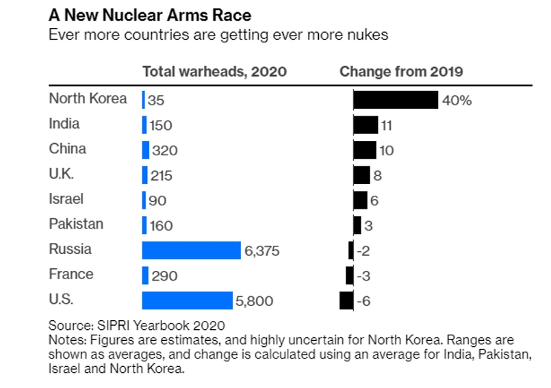 Aby jeszcze bardziej skomplikować globalną geopolityczną układankę, należy uwzględnić również siedem pozostałych potęg jądrowych i być może w powstałe w przyszłości kolejne. Korea Północna może wydawać się najbardziej niezrównoważoną spośród nich. Chiny są jednak najbardziej ambitne. Według niektórych szacunków mogą posiadać już 350 głowic. Pentagon zakłada, że podwoją swój arsenał w nadchodzącej dekadzie.