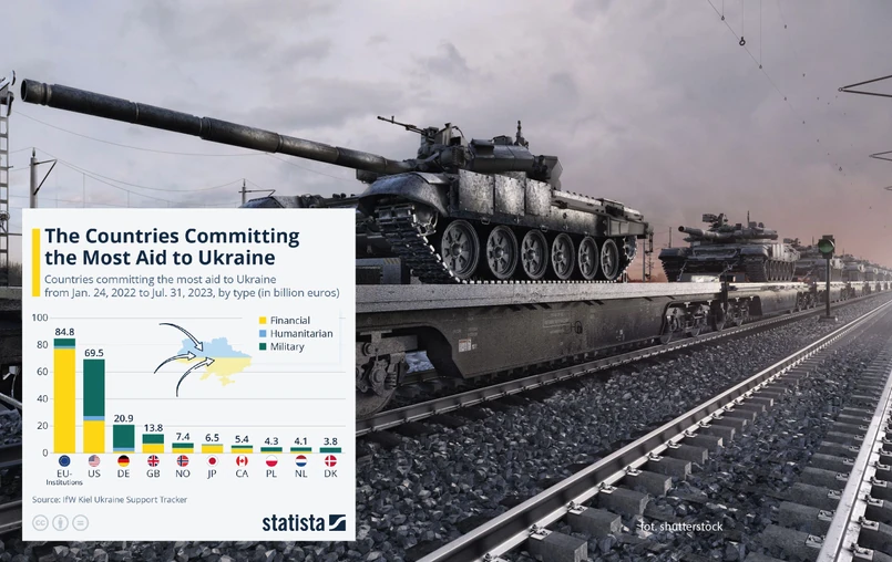 Największy partner Ukrainy w zakresie pomocy wojskowej od początku wojny, Stany Zjednoczone, przeznaczyły na pomoc łącznie 69,5 miliarda euro, biorąc pod uwagę także wsparcie finansowe i humanitarne. Sama pomoc wojskowa USA była na poziomie 42 mld euro. Kolejnym państwem z największym wkładem w pomoc Ukrainie są Niemcy. Łączne wsparcie dla Ukrainy naszych zachodnich sąsiadów jest na poziomie 20,9 mld euro, w tym 17,1 mld euro to pomoc wojskowa. Następne są: Wielka Brytania (łącznie 13,8 mld EUR, w tym 6,6 mld EUR pomocy wojskowej) i Norwegia (7,4 mld EUR, z czego na wojsko przeznaczono 3,7 mld EUR).