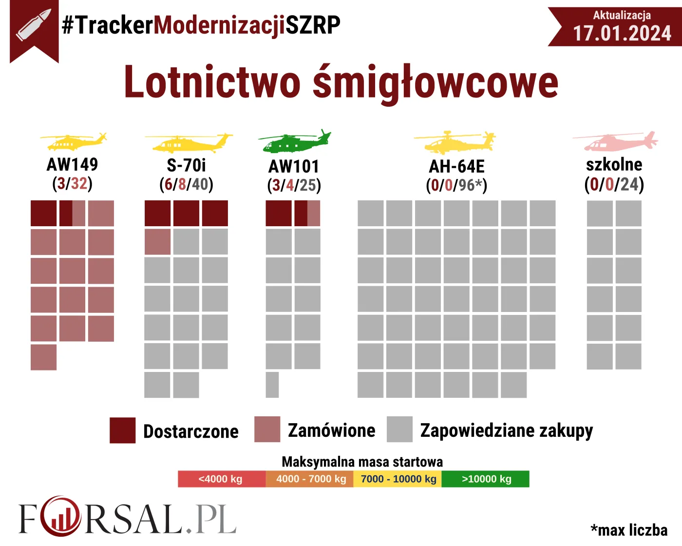 - 24 śmigłowce w konfiguracji, która umożliwia prowadzenie szkolenia z użyciem lotniczych środków bojowych;