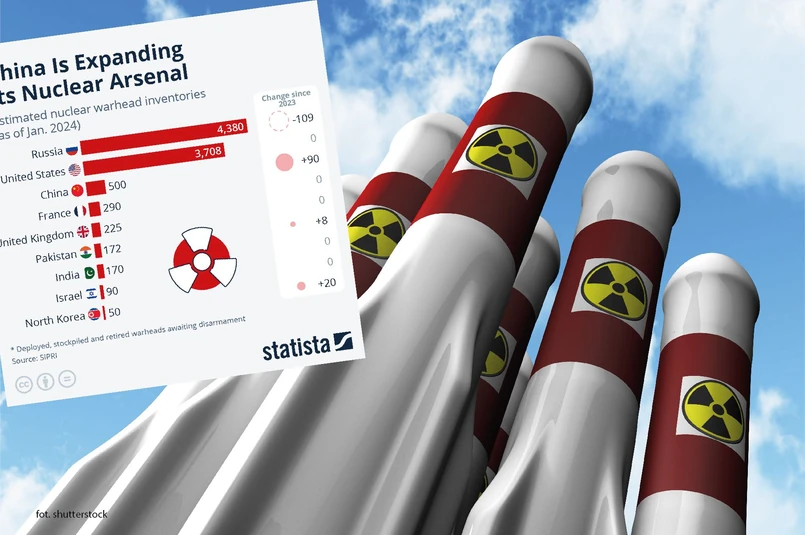 Jak pokazuje wykres Statisty, w ostatnim roku Chiny zwiększyły swój arsenał o 90 głowic nuklearnych, i obecnie mają na stanie 500 śmiercionośnych rakiet - wynika to z danych instytutu badań nad pokojem SIPRI. Indie i Korea Północna również rozszerzyły swoje arsenały, zwiększając ich całkowitą liczbę do odpowiednio 170 głowic i 50 głowic.
