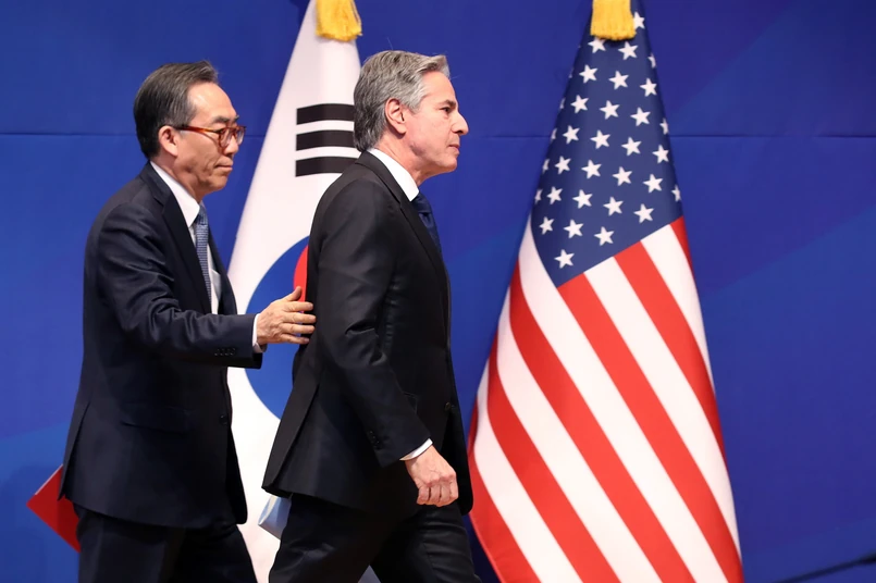 Podczas wspólnej konferencji prasowej z ministrem spraw zagranicznych Korei Płd. Czo Te Julem Blinken przyznał, że "istnieją wiarygodne dowody na to, że Moskwa zamierza dzielić się z Pjongjangiem zaawansowanymi technologiami kosmicznymi i satelitarnymi", a siły północnokoreańskie "już otrzymują rosyjski sprzęt wojskowy i (przechodzą) szkolenia" we współpracy z Rosjanami.