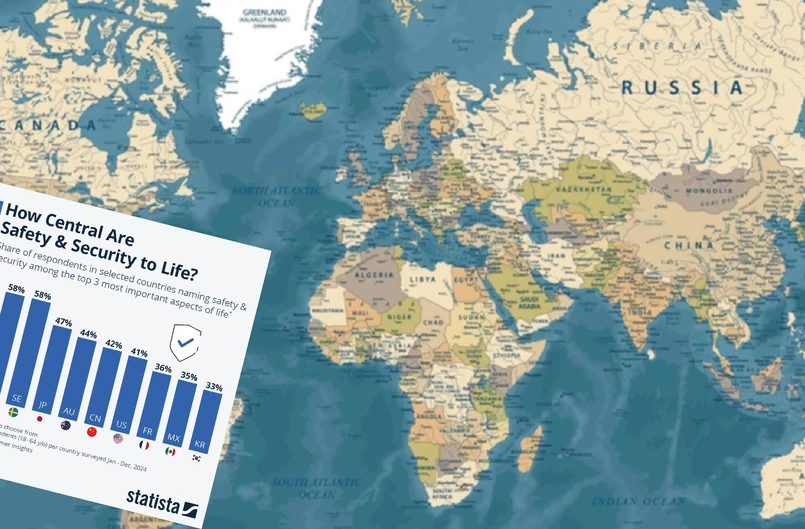 Badanie przeprowadzone przez Statista Consumer Insights pokazuje, że wśród 21 przebadanych krajów sąsiedzi Rosji najczęściej wymieniali bezpieczeństwo jako jeden z trzech najważniejszych aspektów życia.